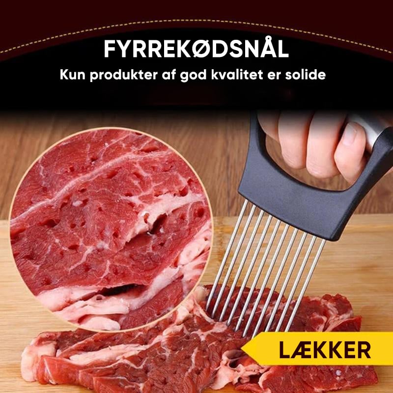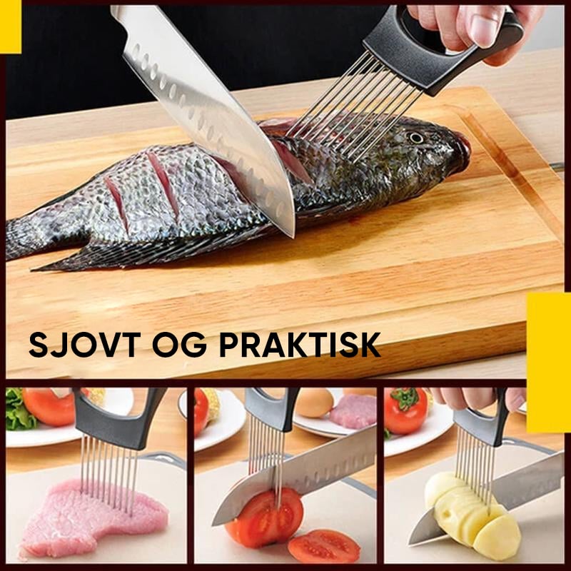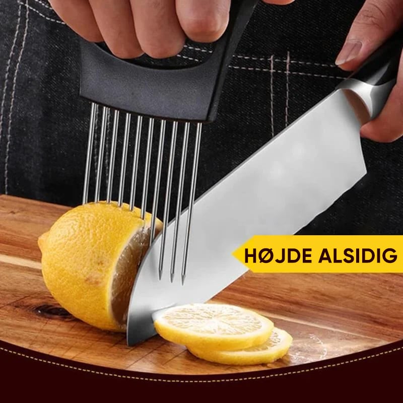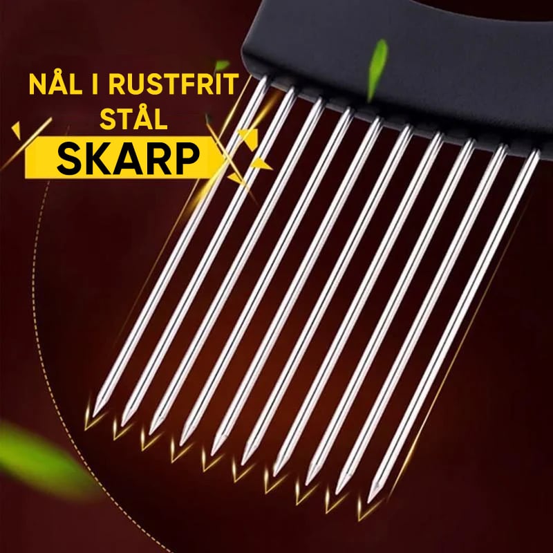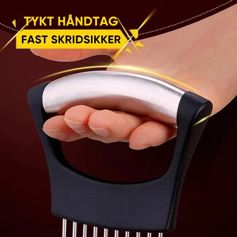 【Smart design】 Løgholder Skarpe sømme forhindrer at glide og skæres jævnt for større sikkerhed, og stiftsamlinger er robuste og holdbare, ikke nemme at falde af.